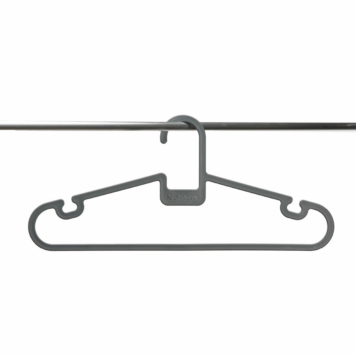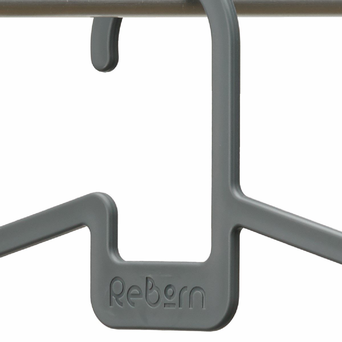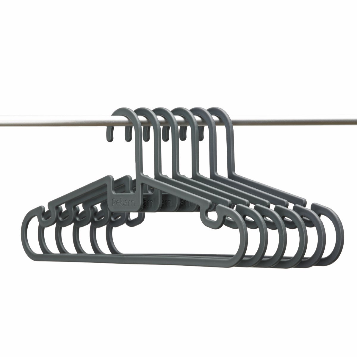 The ReBorn coat hangers are robust and space efficient. The notches in the hanger help securely hang garments with thin straps. And the middle section is designed to neatly hang ties and belts. It has a reinforced bar for hanging heavier trousers, and a compact design to maximize storage space. Designed and made in the UK, from recycled materials.
