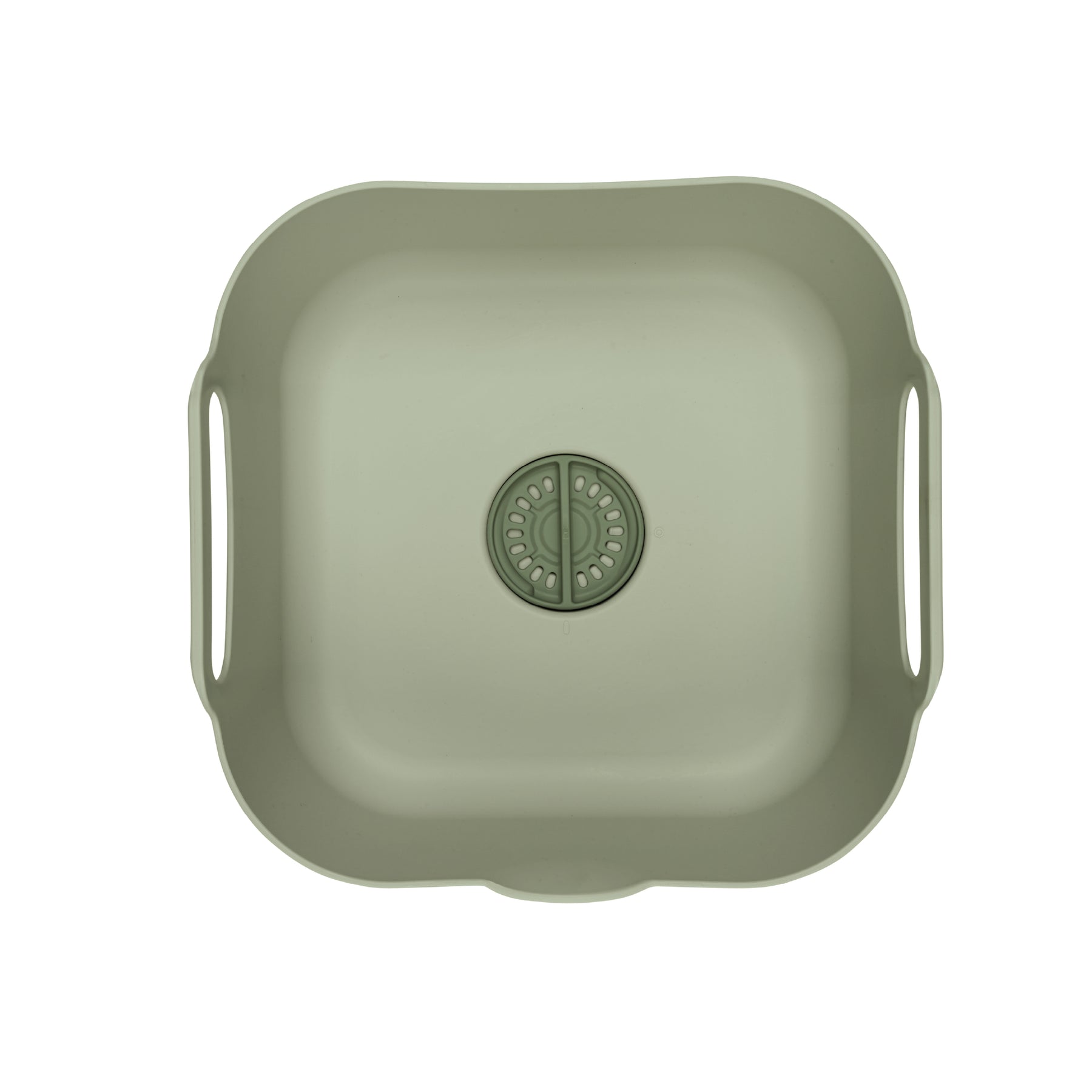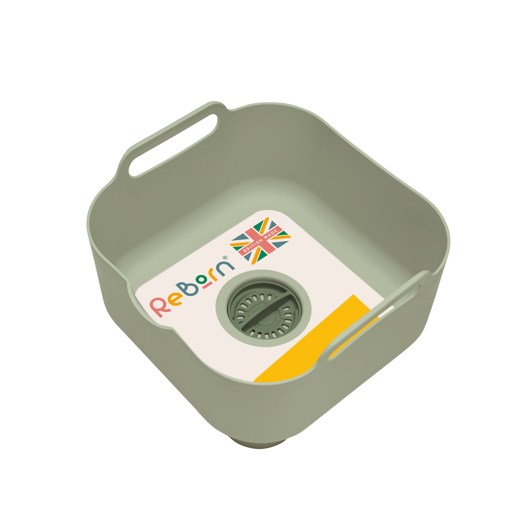 Suitable for most sinks, the ReBorn washing up bowl has a generous 9 litre capacity. It has large carry handles for easy lifting, and legs to elevate the bowl for clean draining. It has an integrated plug for quick draining. The plug can also be set to strain water with food particles etc. Thanks to a handy pour spout, you can easily decant water to other vessels or water your plants. All components can be taken apart for easy cleaning. Designed and made in the UK, from recycled materials.